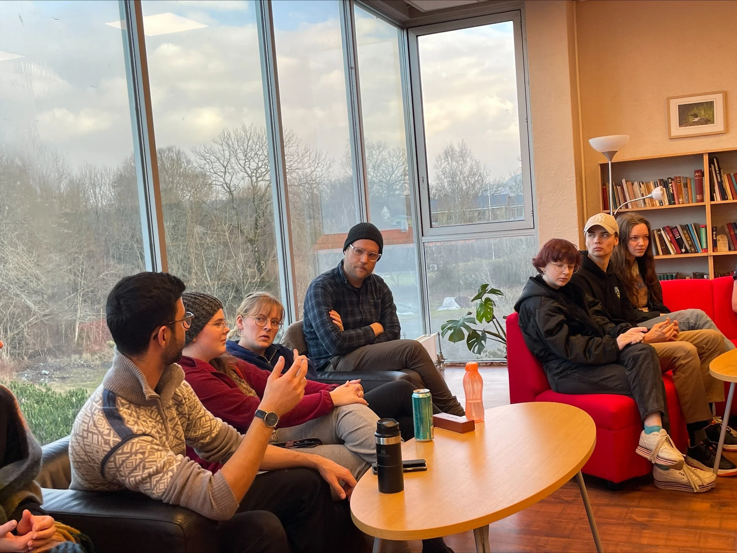 Etter filmen er det livlige diskusjoner rundt det de akkurat har sett.